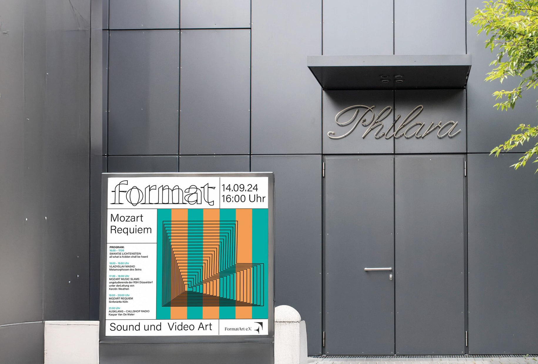 Als Mitglied des Vereins entwickelte ich das visuelle Erscheinungsbild, das den Rhythmus zwischen klassischer und moderner Musik miteinander vereint. Ähnlich wie bei der Entwicklung neuer Aufführungsformate für klassische Musik basiert das Erscheinungsbild auf einem modularen System von grafischen Elementen, durch das stets neue visuelle Formate erschlossen werden.